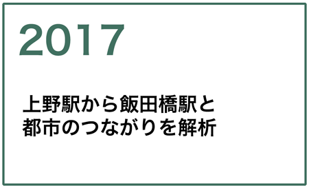 AAスクールと東京芸術大学と前田建設工業(株)の共同でワークショップを開催。東京芸術大学のある上野駅から前田建設工業本社のある飯田橋駅まで電車で経由する6つの駅に着目。(上野-御徒町-秋葉原-御茶ノ水-水道橋-飯田橋)駅と都市のつながり、すなわち「駅を中心とした空間的な広がり」「機能的な結び付き」「人や物の流れ」など 都市の文脈を解析。コラージュとして紙に表現しプレゼンテーションした。